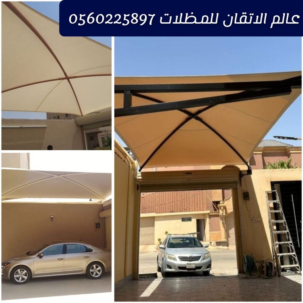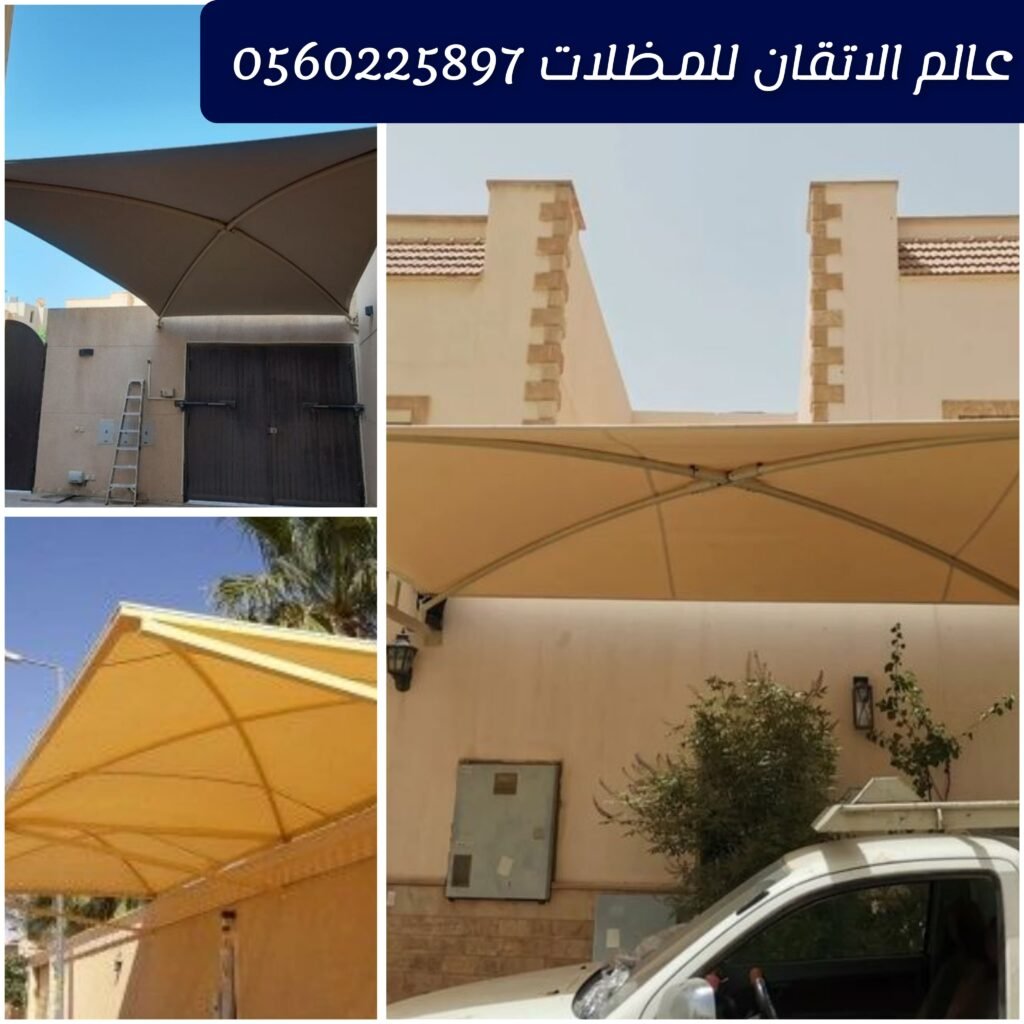 يوجد لدينا مظلات معلّقة قماشية وعصرية، ومعدنية قوية، بالإضافة إلى مظلات شد إنشائي (Tensile Structures) لتغطية المساحات المختلفة، بحيث تناسب الحوش، الجلسات الخارجية، ومواقف السيارات.